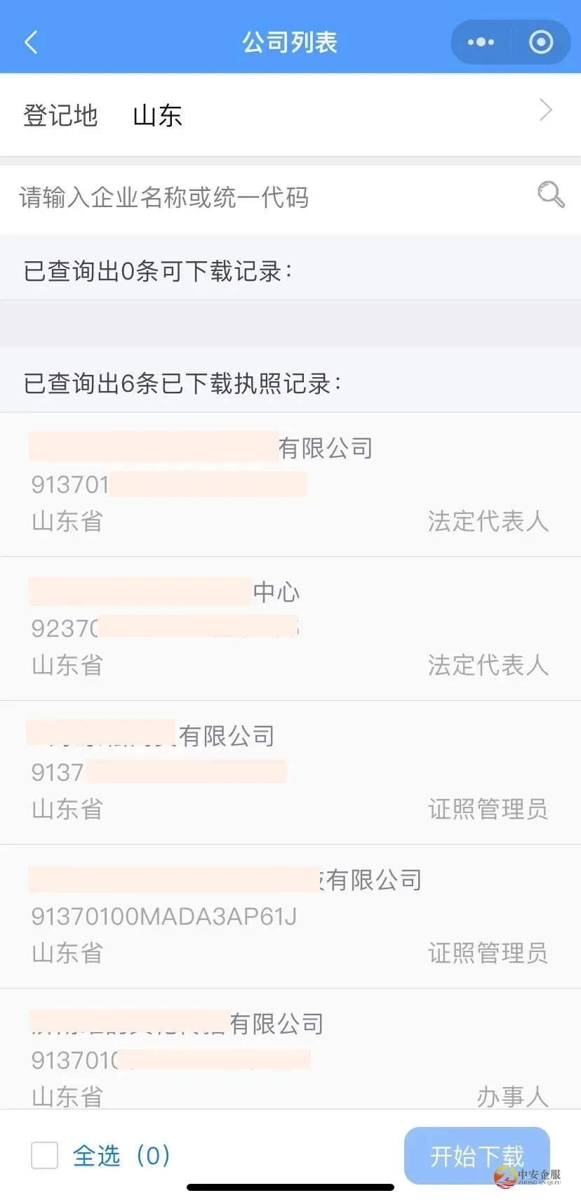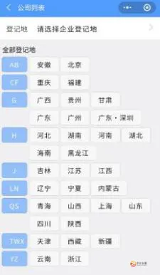 第四步:选择公司所在地及公司名称