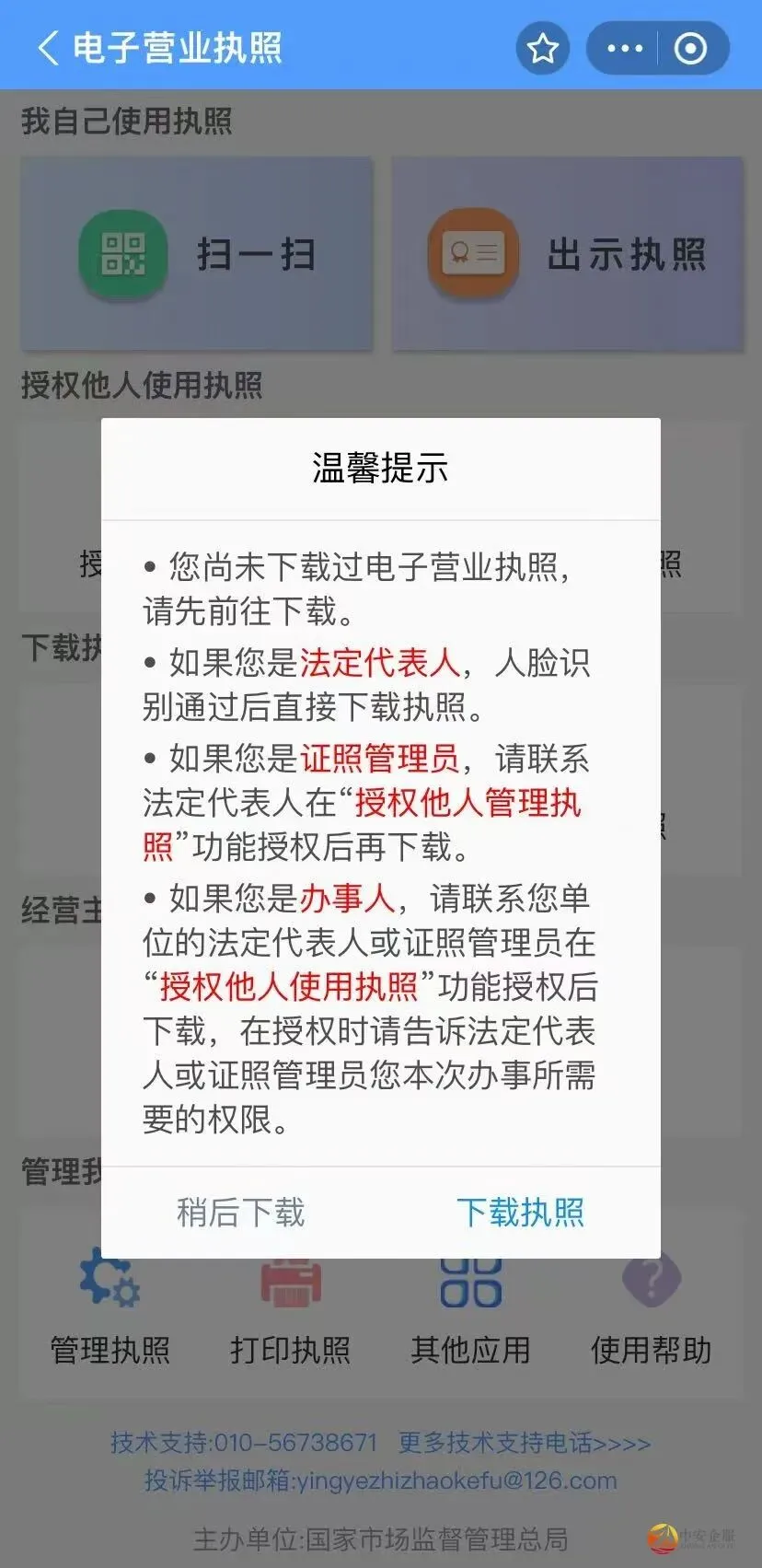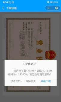 第二步:点击页面中的【下载执照】,前往下载电子营业执照。