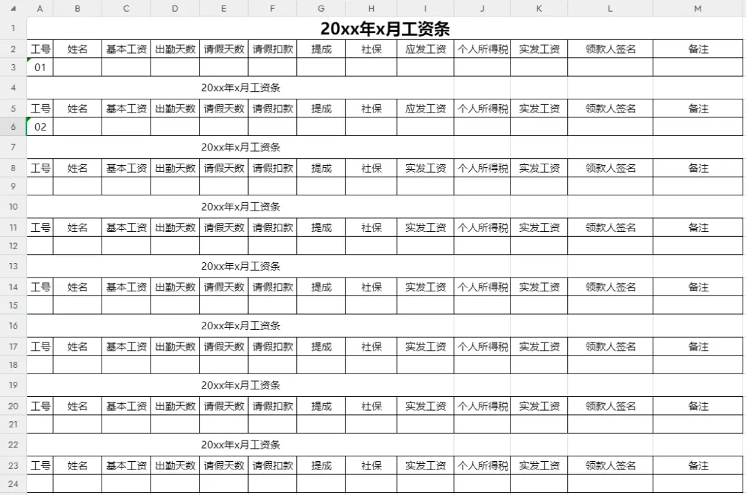 还在为每月手动制作工资条而耗费大量时间吗?现在,这份工资条(工资表自动生成工资条)电子版免费下载,就是您解放双手、提升效率的财务神器!我们设计的这款Excel模板,只需将工资表数据粘贴到指定区域,点击生成,系统便能瞬间为每位员工自动拆分出格式统一、内容清晰的独立工资条,完美保护薪资私密性。最关键的是,这款强大的自动化工具完全免费下载,它不仅将您从繁琐的复制粘贴中解放出来,更通过公式锁定确保数据准确无误,几分钟完成过去几小时的工作。别再让重复劳动消耗您的宝贵时间,立即点击免费下载,体验自动化办公的高效与便捷,让工资条发放变得前所未有的轻松、准确与专业!