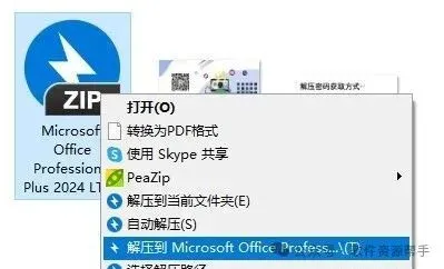 1.下载Microsoft Office Professional Plus 2024软件安装包到电脑上,右键选择【解压到Microsoft Office Professional...\】。