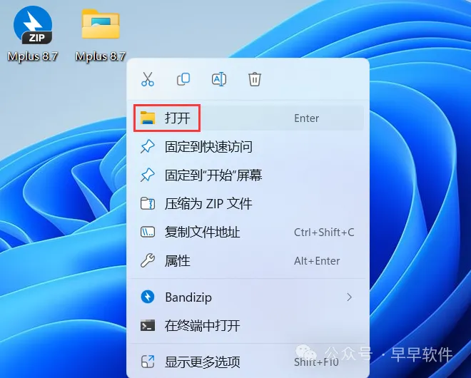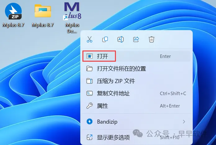 10、回到桌面,右键桌面上的【Mplus 8.7软件图标】,点击【打开】