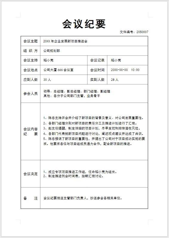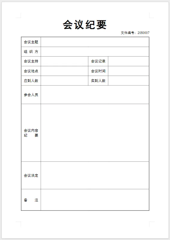 会议纪要模板 电子版免费下载(Word版可编辑打印)