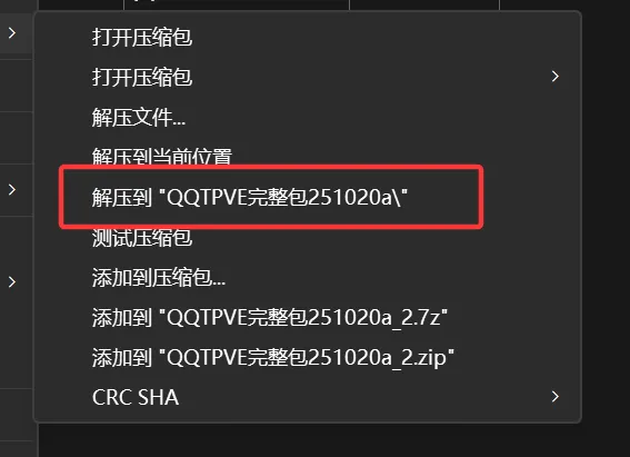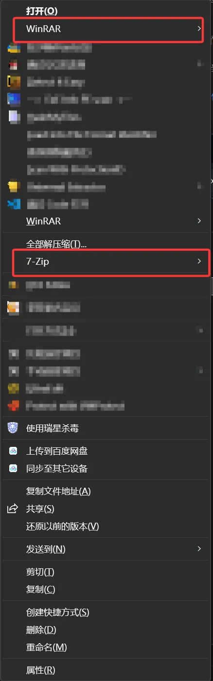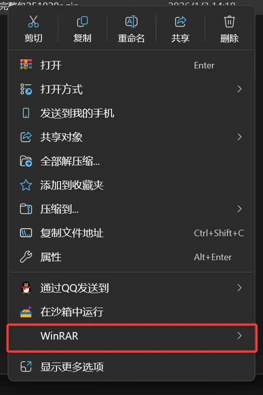 比如我Windows 11的新版右键菜单(对压缩包直接点击右键):