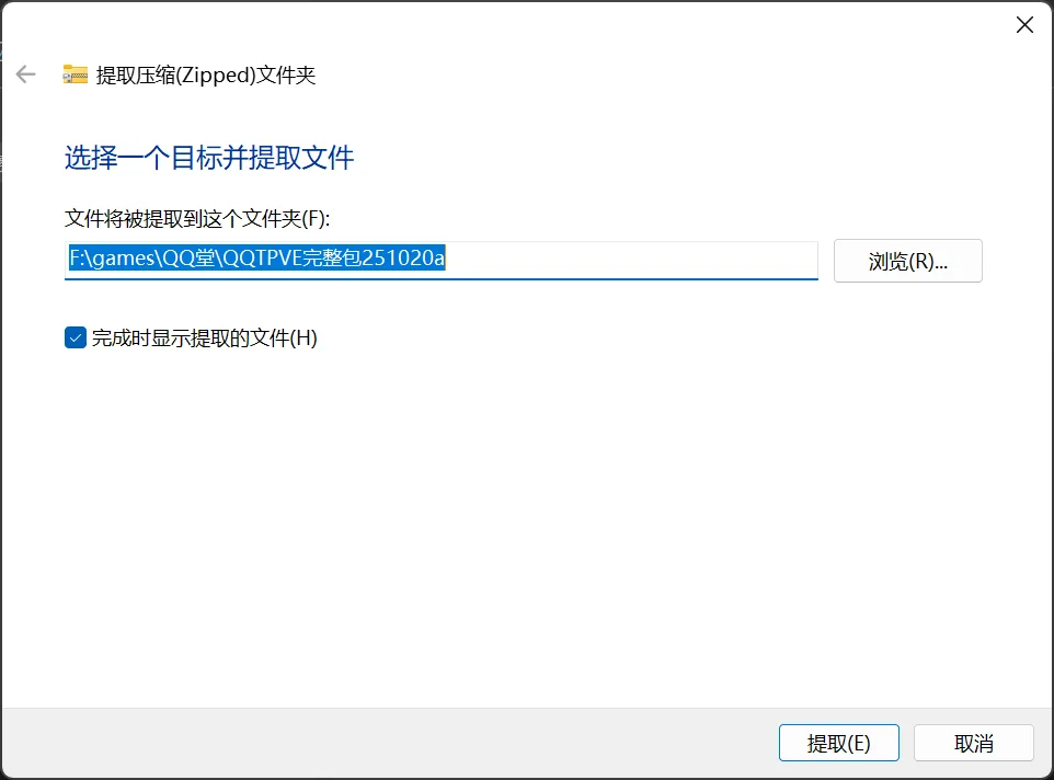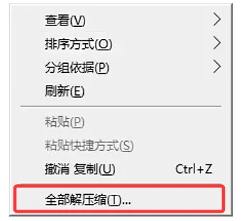 这种场景下请点击全部解压缩(Windows 10及更低版本的系统需要通过右键菜单找到这个选项)