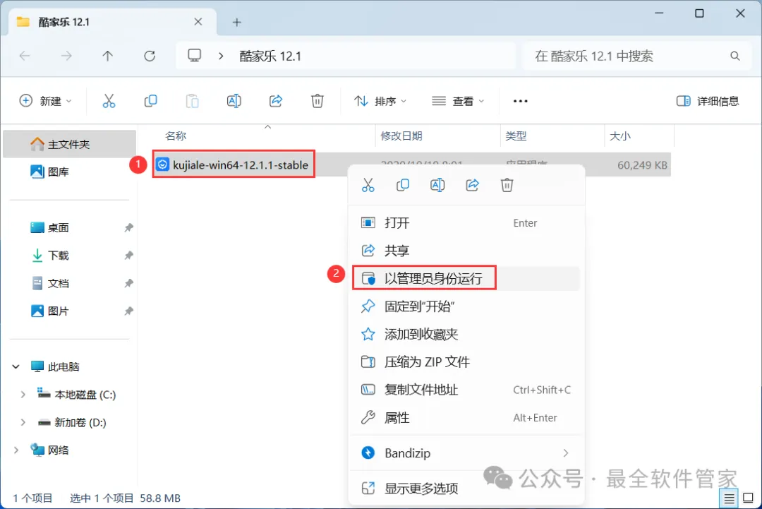 3、找到【kujiale-win64-12.1.1-stable】应用程序,右键选择【以管理员身份运行】它