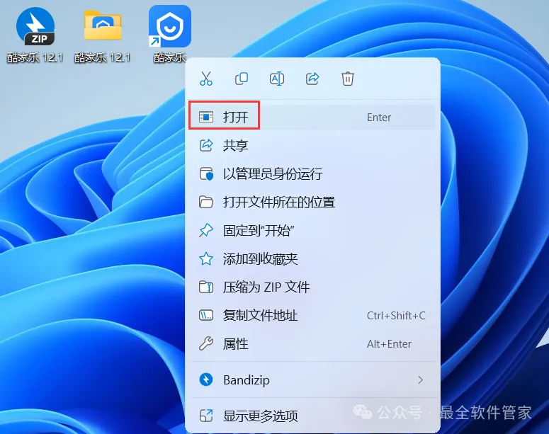 8、回到桌面,右键桌面上的【酷家乐软件图标】,点击【打开】