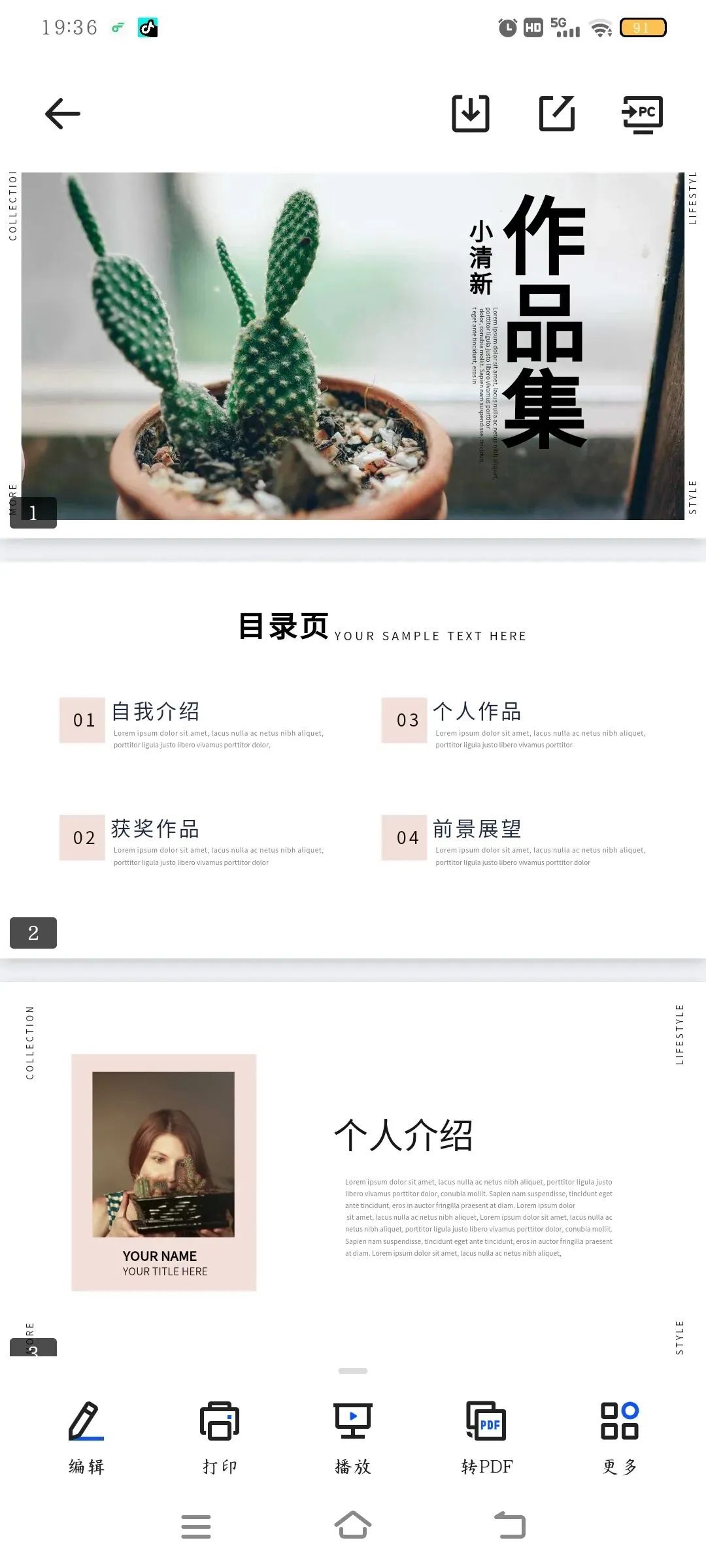 【小清新作品集PPT模板】