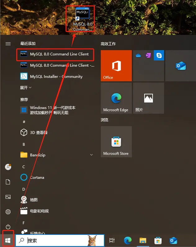 第二十一步:点开始,找到刚刚安装的【MySQL80. Command Line Client】,将其拖到电脑桌面。