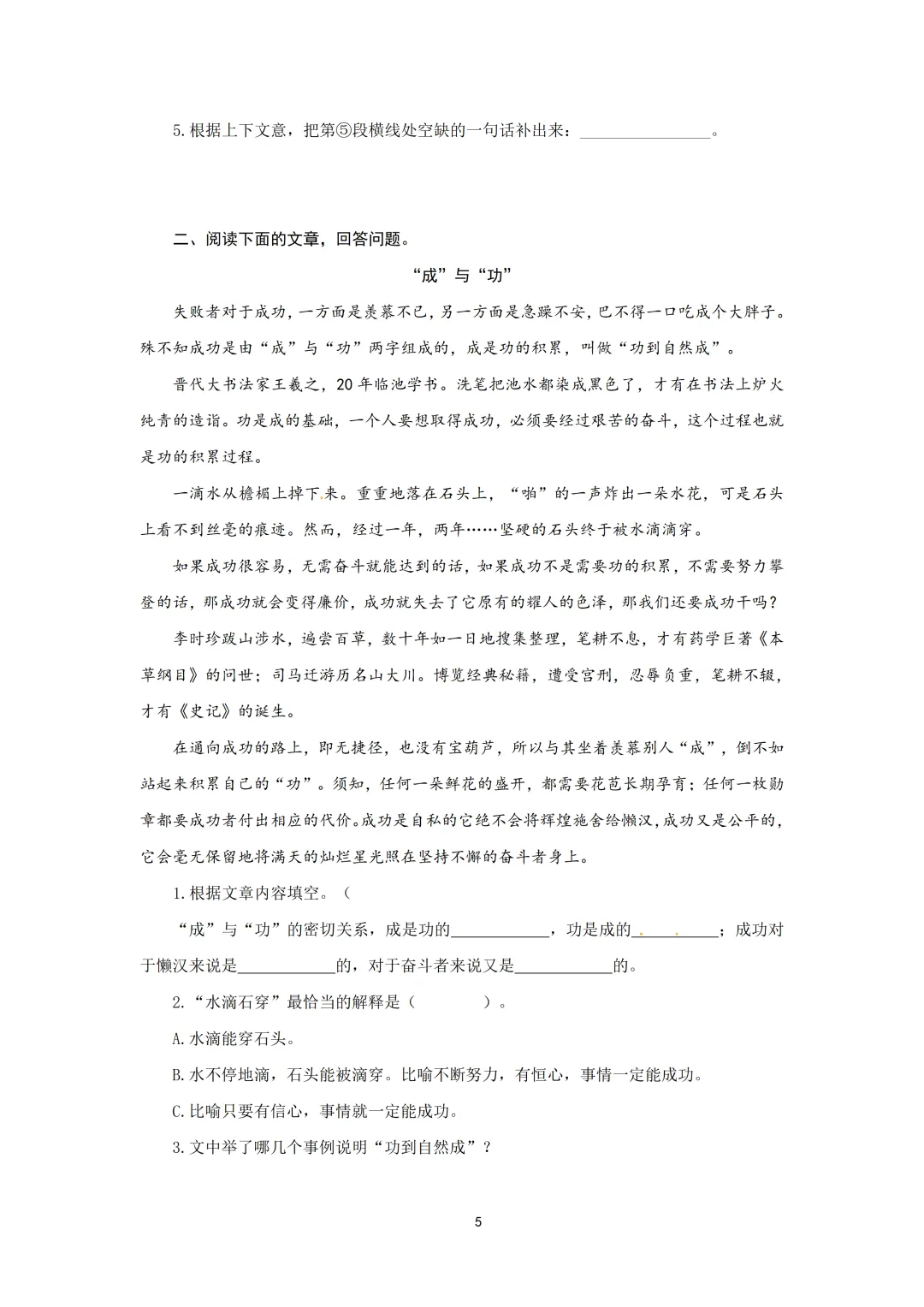 >人教版小学语文分类阅读寒假衔接讲义-免费下载