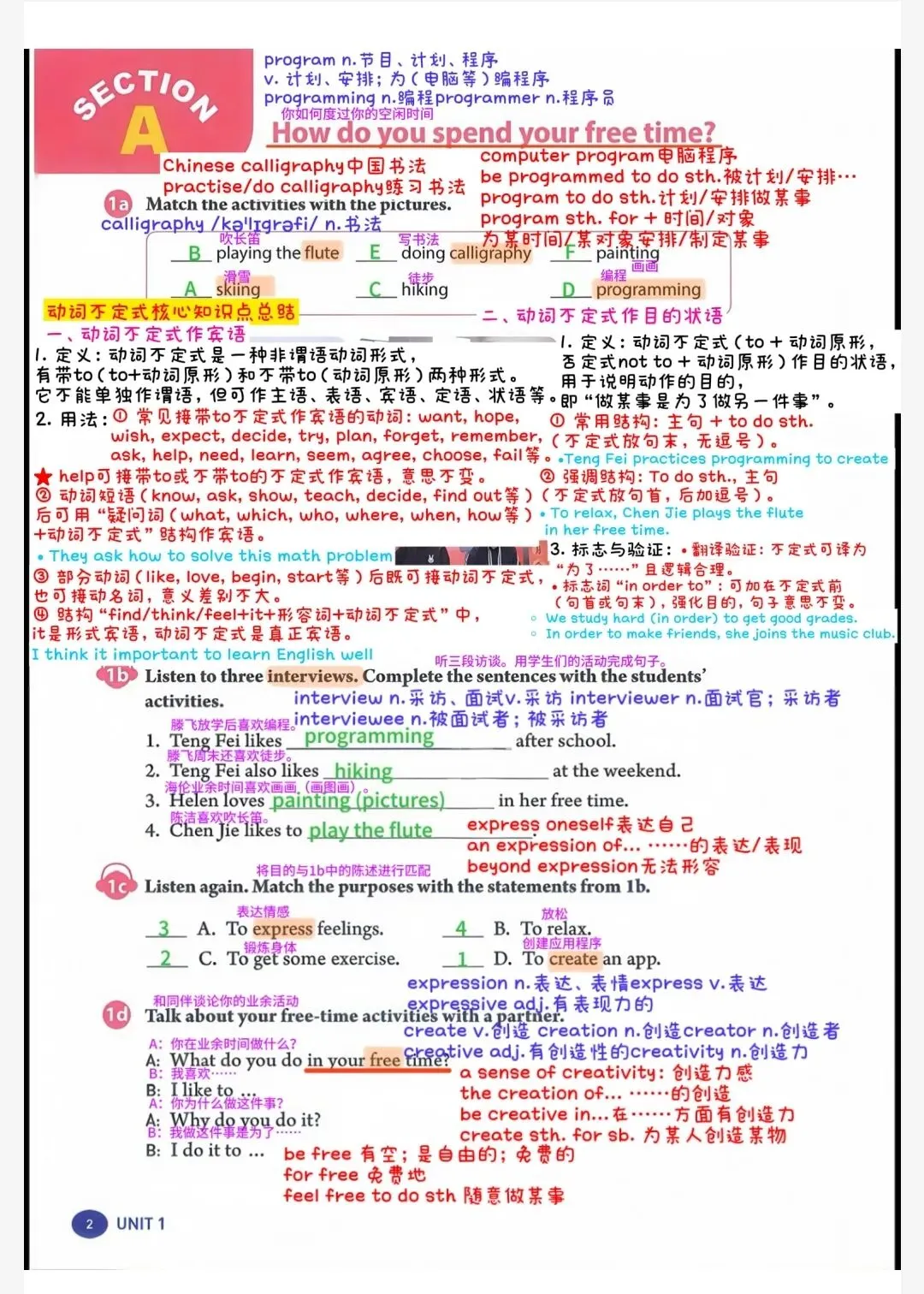 2. describe different free-time activities and hobbies.