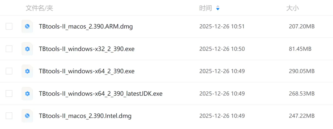 - 近期购买的MacOS,几乎全部是ARM架构的芯片,M系列,M1到Mx,那么选择 TBtools-II_macos_xxx.ARM.dmg;