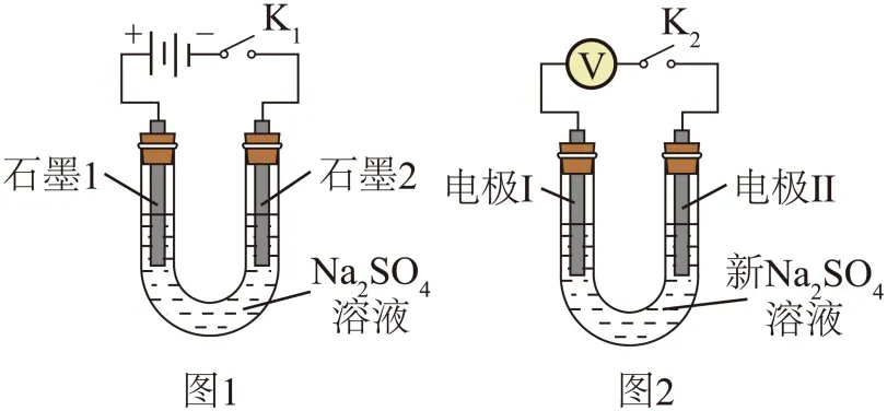 溶液(图1)后的石墨电极1、2探究氢氧燃料电池,重新取