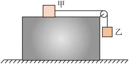 5.如图,装有轻质光滑定滑轮的长方体木箱静置在水平地面上,木箱上的物块甲通过不可伸长的水平轻绳绕过定滑轮与物块乙相连。乙拉着甲从静止开始运动,木箱始终保持静止。已知甲、乙质量均为,甲与木箱之间的动摩擦因数为0.5,不计空气阻力,重力加速度g取,则在乙下落的过程中( )