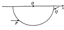 13.如图,玻璃砖的横截面是半径为R的半圆,圆心为O点,直径与x轴重合。一束平行于x轴的激光,从横截面上的P点由空气射入玻璃砖,从Q点射出。已知P点到x轴的距离为、Q间的距离为。