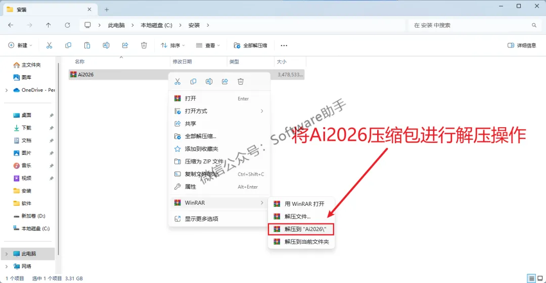 1.鼠标右击【Ai2026】压缩包,将它解压