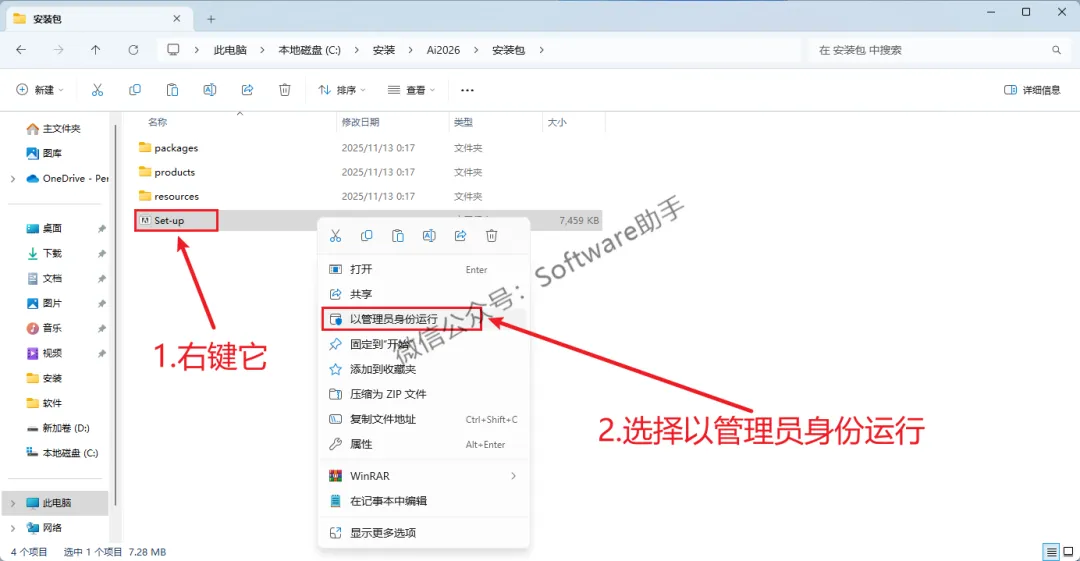 3.鼠标右键【Set-up】,选择【以管理员身份运行】