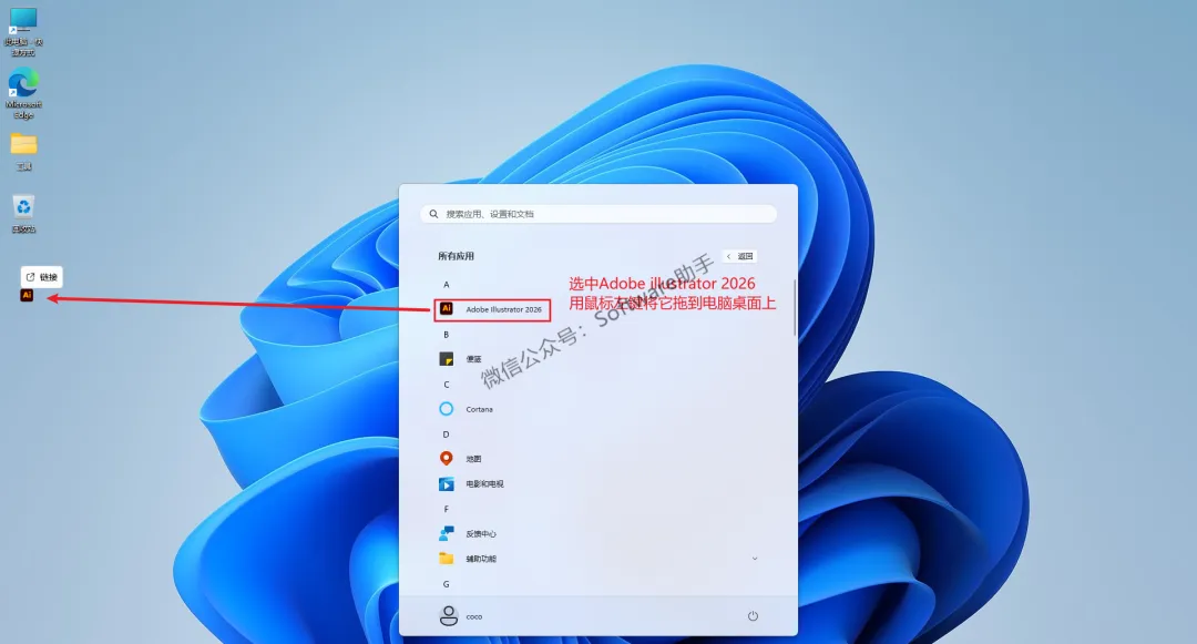 10.选中Ai2026,用鼠标左键将它拖到电脑桌面即可