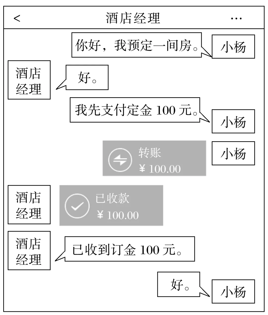 13.小杨通过微信预订酒店房间,聊天记录如图所示。后因酒店未预留房间,小杨无法办理入住。对此,下列说法正确的是( )