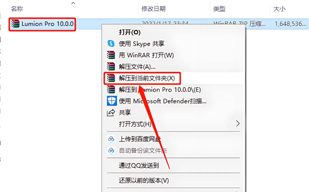 1.打开下载好的软件安装包,鼠标右击压缩包【选择解压到当前文件夹】。