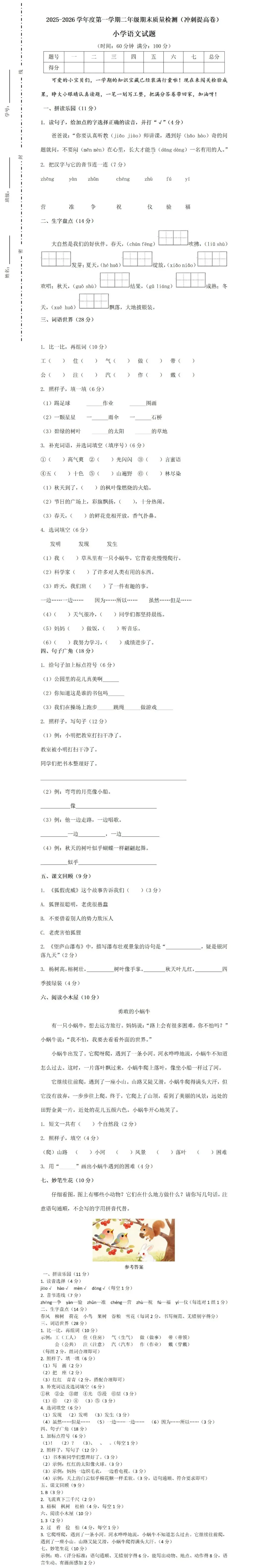二年级上册期末冲刺提高卷附答案(免费下载)