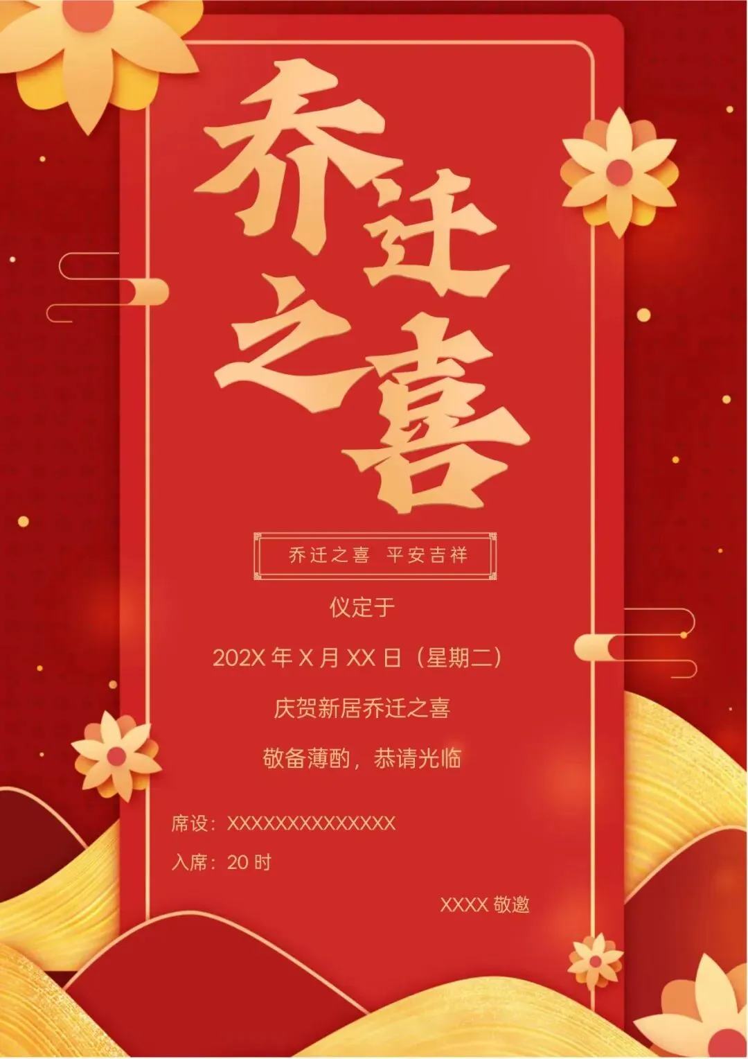 大家好,今天给大家分享16款乔迁之喜邀请函模板,模板的字体,字体颜色可根据需要修改,手机,电脑可编辑,有视频教学