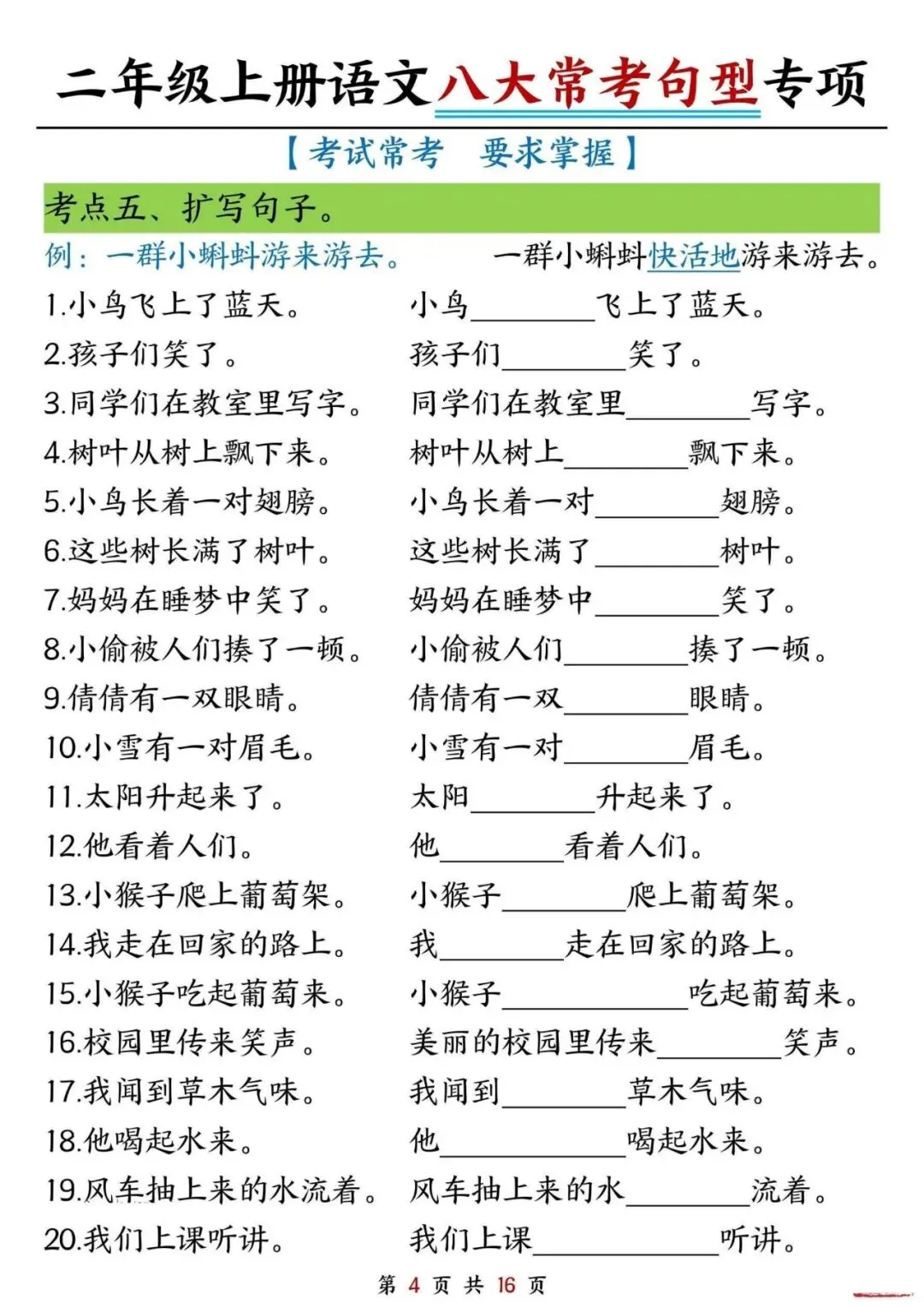 【免费下载】二年级语文上册《八大常考句型专项训练》| 可下载打印