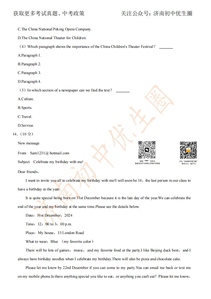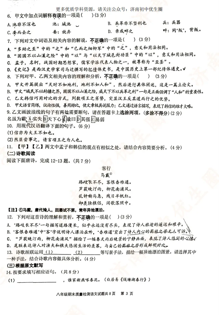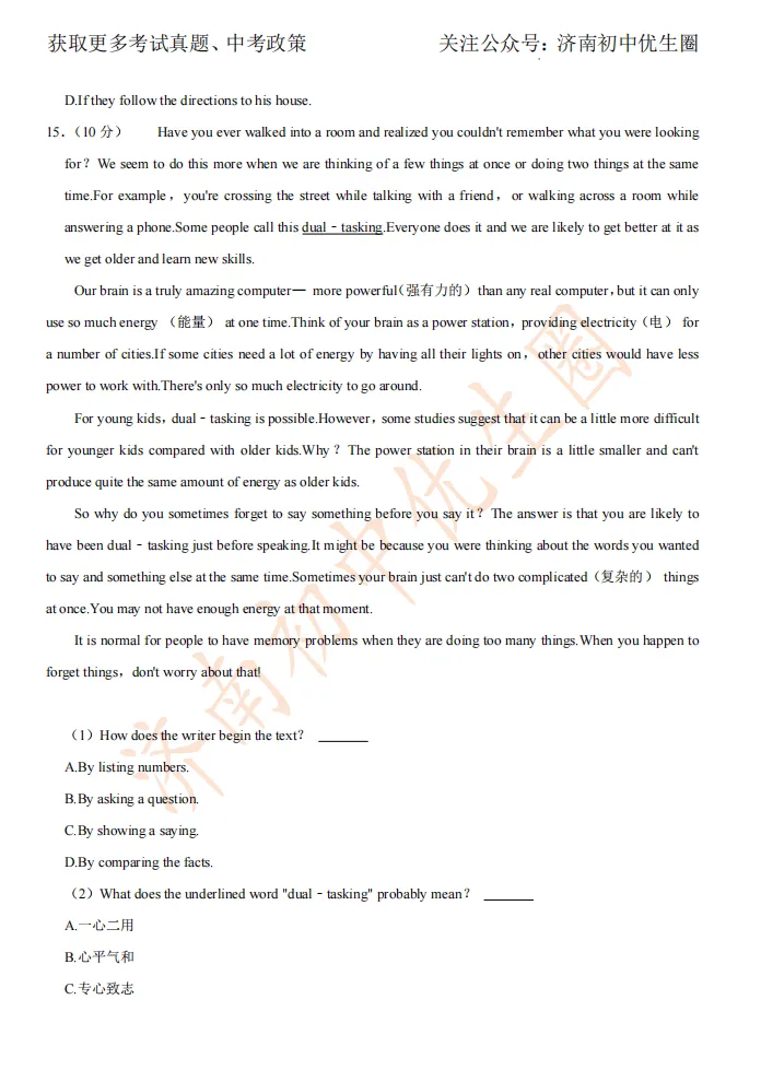 一模时间定了!24年济南初三一模真题+答案解析免费领取!