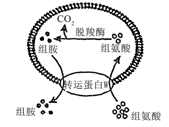 4.某细菌能将组氨酸脱羧生成组胺和CO2,相关物质的跨膜运输过程如下图。下列叙述正确的是()