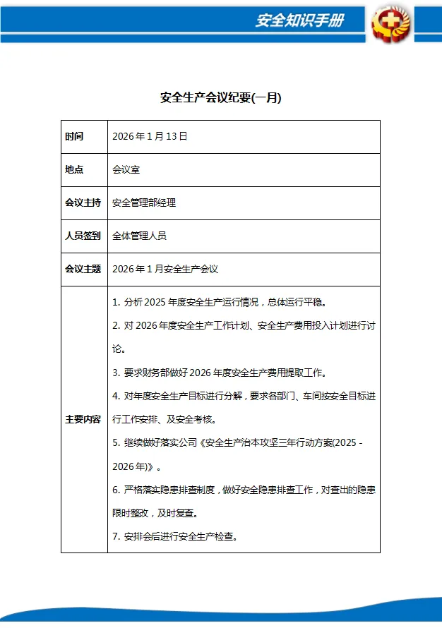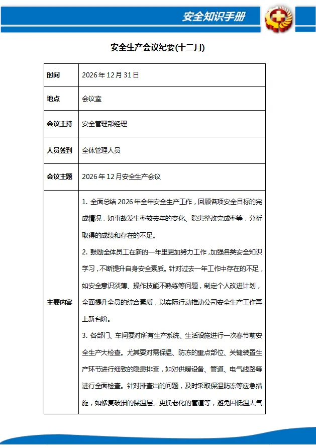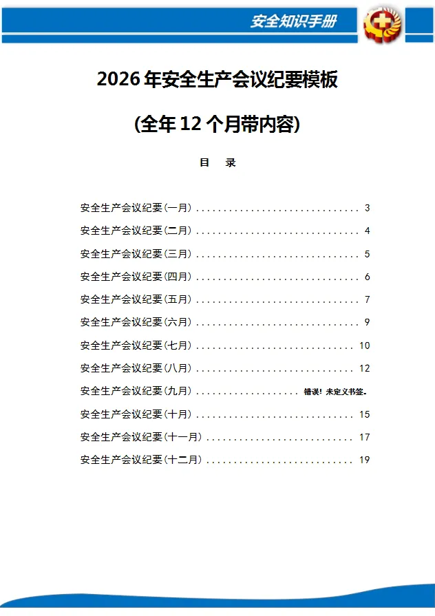 免费下载/2026年度全年各类安全工作计划(培训、投入、检查、演练等)