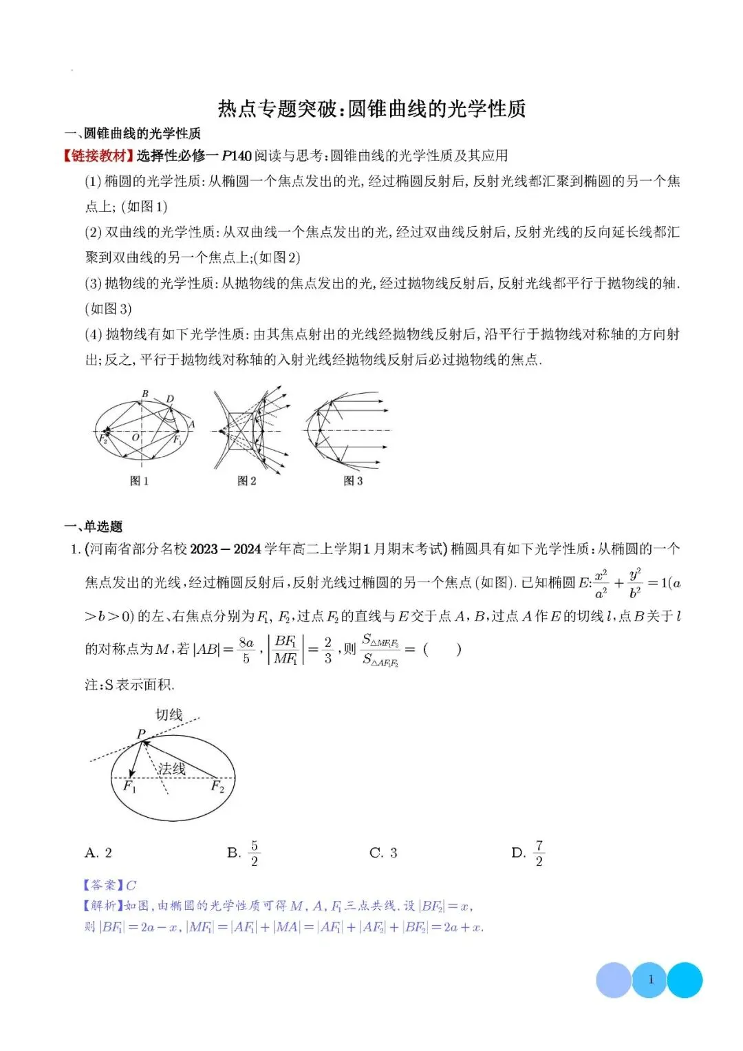通过网盘分享的文件:热点专题突破:圆锥曲线的光学性质(解析版).pdf