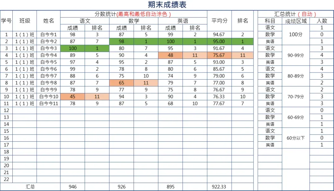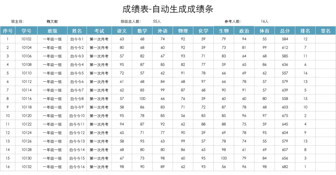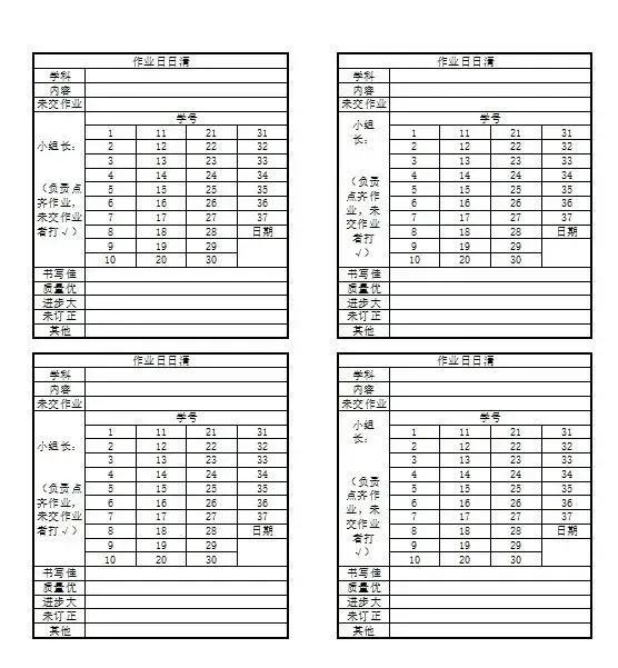 中小学教师必备表格汇总