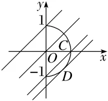 含有限制条件,即x≥0,故曲线并非表示整个单位圆,仅仅是单位圆在y轴右侧(含与y轴的交点)的部分.在同一平面直角坐标系中,画出y=x+b与曲线x=