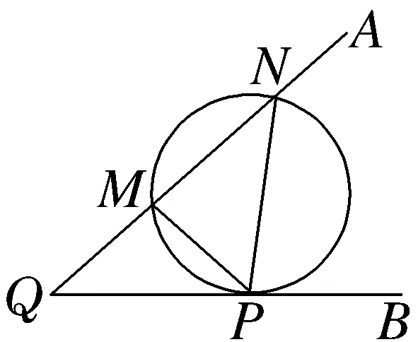 解析:∵点M(-1,2),N(1,4),则线段MN的中点坐标为(0,3),易知kMN=1,则经过M,N两点的圆的圆心在线段MN的垂直平分线y=3-x上,设圆心为S(a,3-a),则圆S的方程为(x-a)2+(y-3+a)2=2(1+a2),由题中结论得,当∠MPN取最大值时,圆S必与x轴相切于点P,则此时点P的坐标为(a,0),代入圆S的方程得2(1+a2)=(a-3)2,解得a=1或a=-7,即对应的切点分别为P(1,0)和P'(-7,0),对于定长的弦在弧上所对的圆周角会随着圆的半径减小而角度增大,又过点M,N,P'的圆的半径大于过点M,N,P的圆的半径,∴∠MPN>∠MP'N,故点P(1,0)即为所求,则点P的横坐标为1.