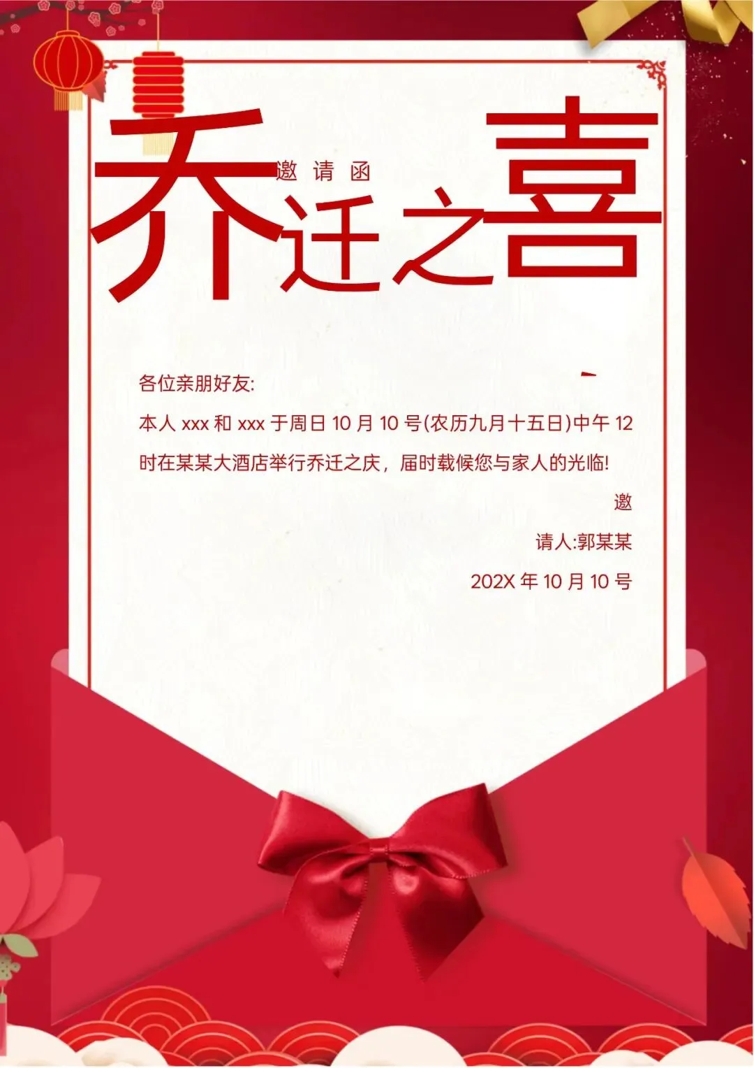 乔迁新居,新居落成,邀请函不知道怎么写,可以参考这款哦!家人们快来抄作业吧🏠