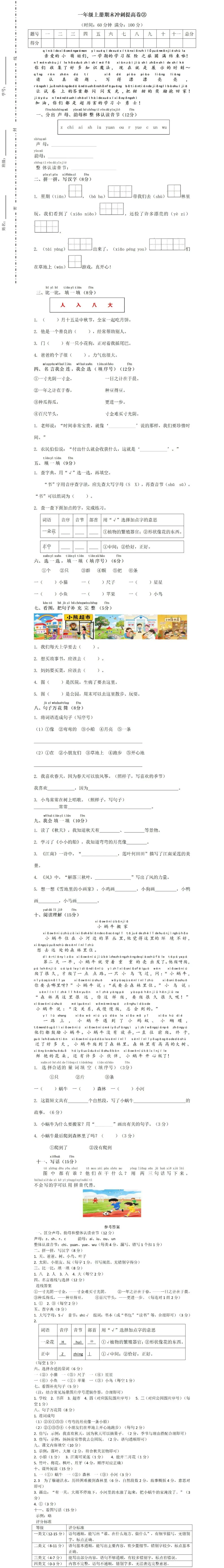 >一年级上册期末冲刺提高卷②附答案(免费下载)
