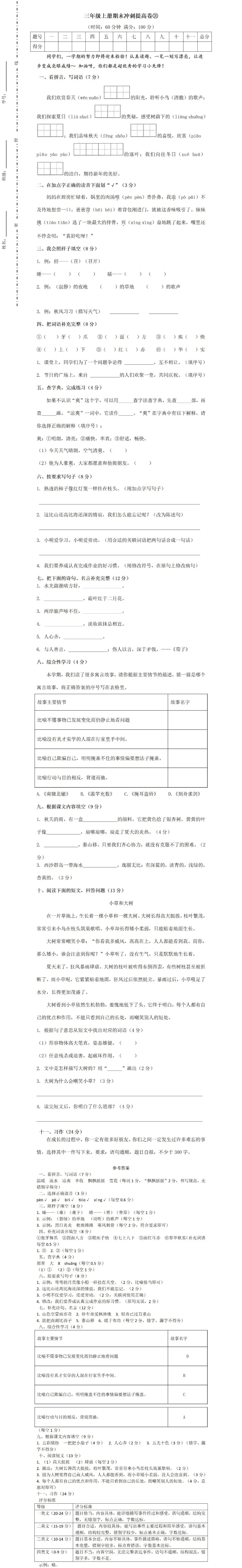 三年级上册期末冲刺提高卷②附答案(免费下载)