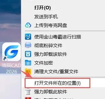 9、右键“浩辰CAD2026”打开文件所在位置(就是安装目录)