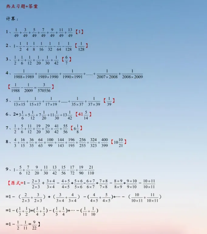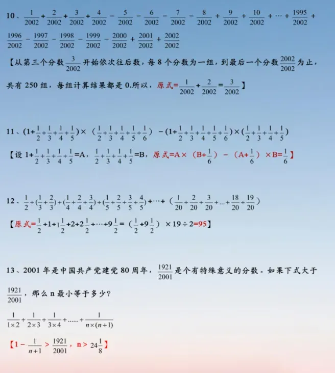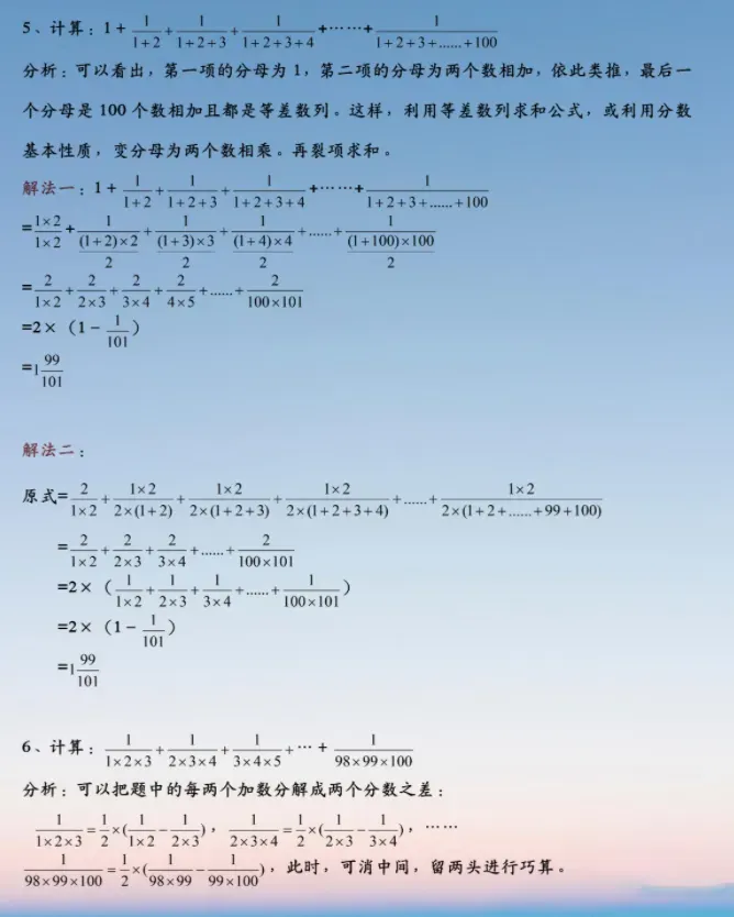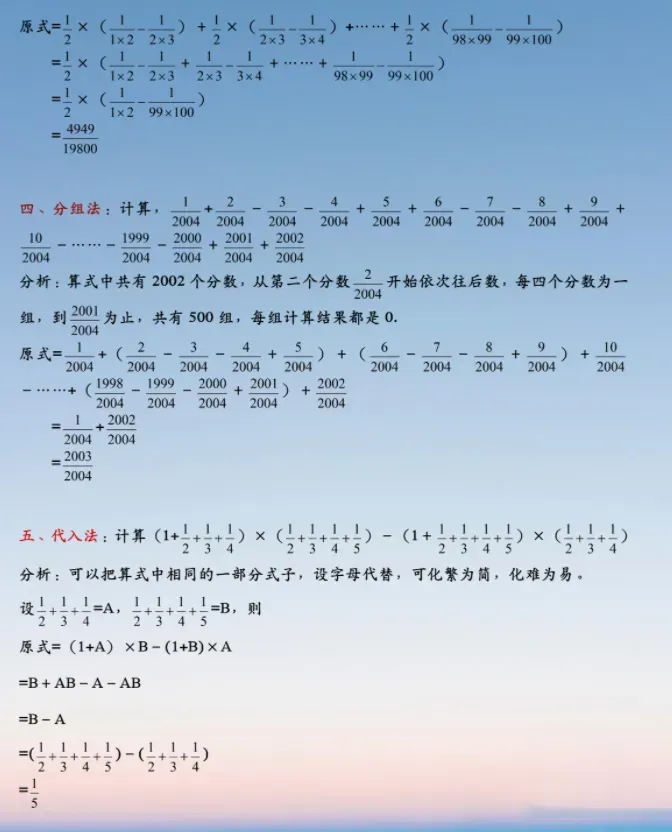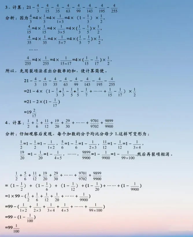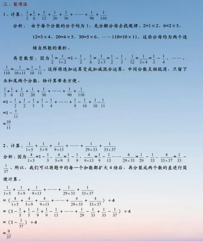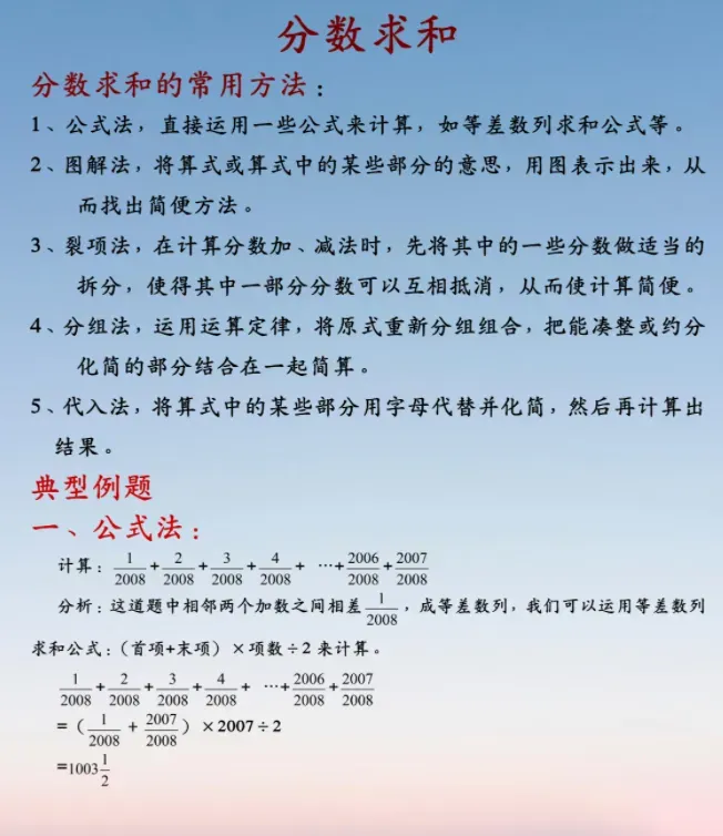 小升初数学:分数求和的5种常用方法,附经典例题解析!,建议各位家长领取打印给孩子学习!