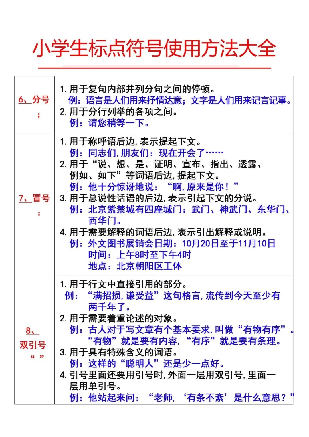 今天给大家准备好了!~一二三四五六年级上册语文 标点符号使用方法大全丨可下载打印,建议分享到班级群/年级群,让家长打印出来,帮助孩子学习!