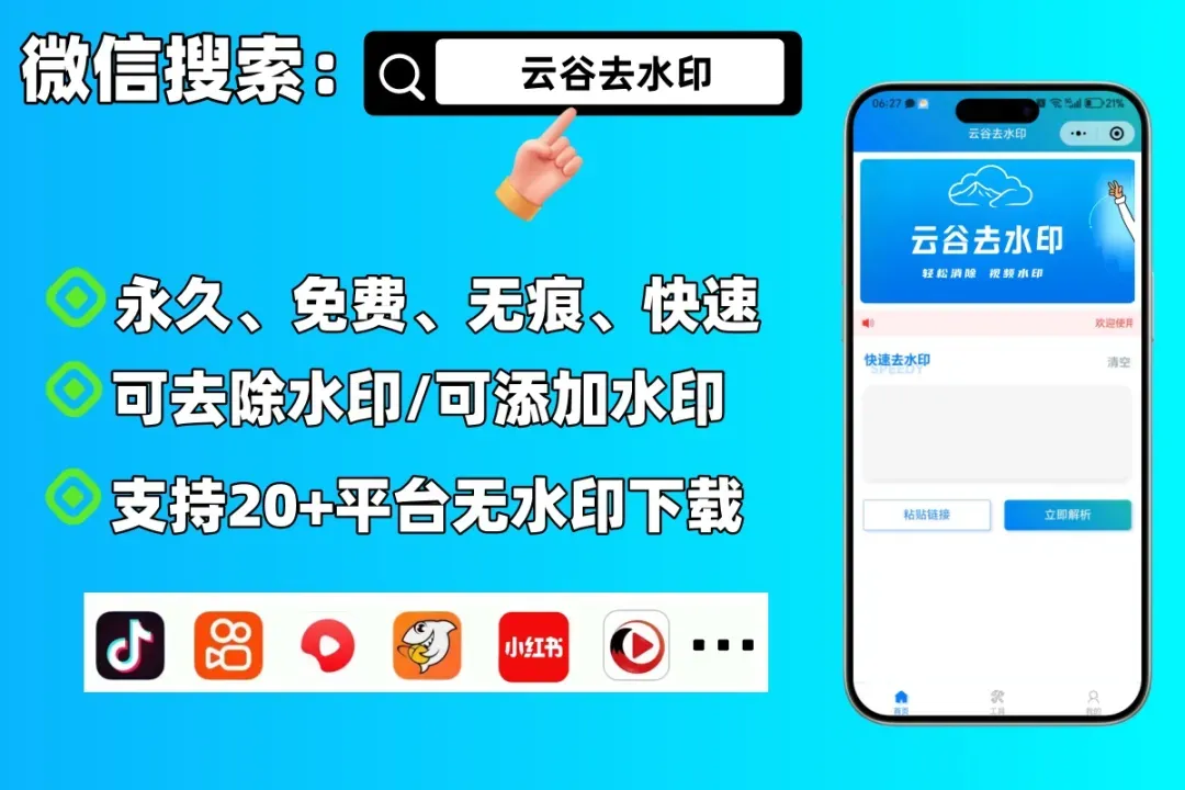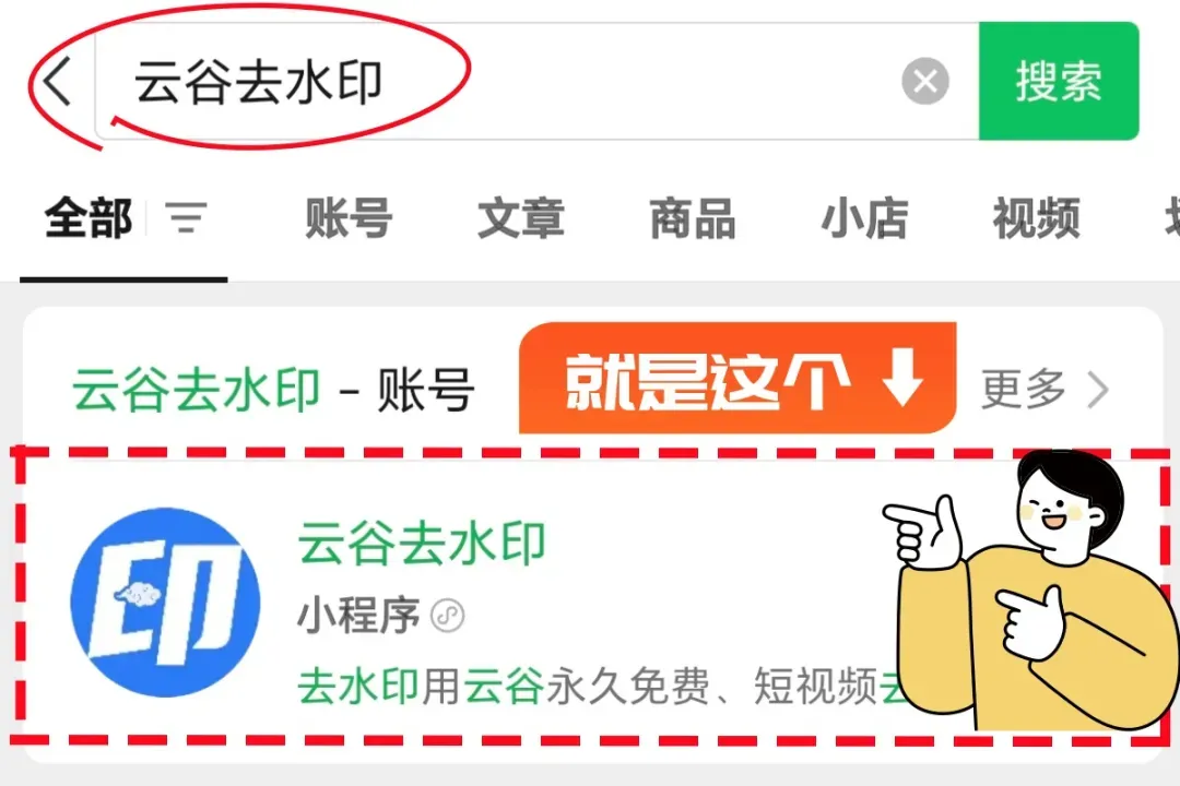 怎么找? 打开微信,直接搜索“云谷去水印”点击进入小程序。