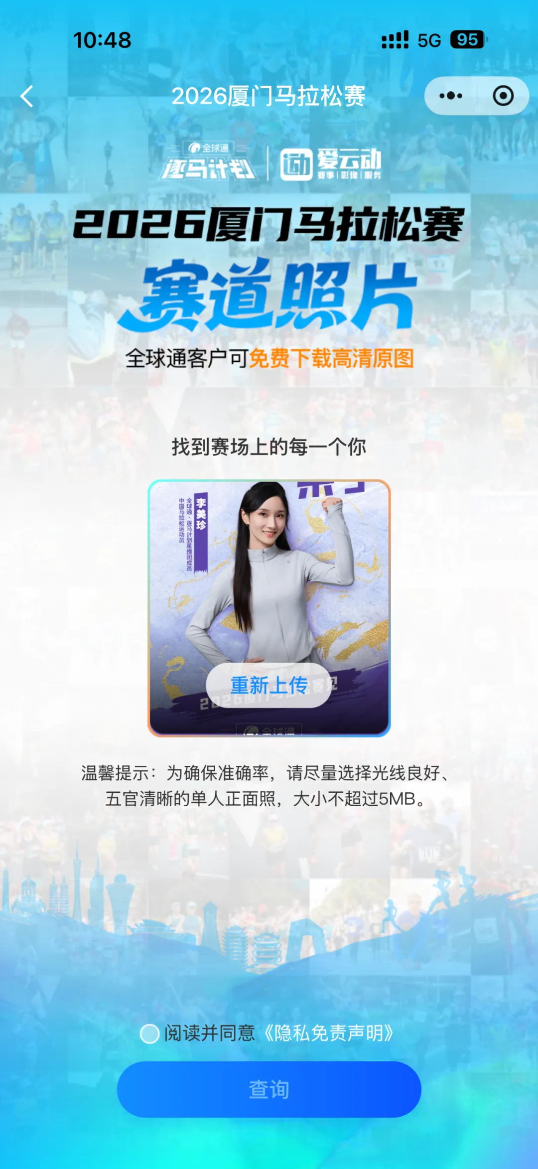 逐马计划联合爱运动,在赛道沿途用镜头悄悄定格了您的每一帧风采——或是绽放的笑容,或是难掩的疲惫,或是咬牙的坚持……无论哪一面,你的每一面,皆是最动人的模样。全球通客户均可享受免费下载3张的特权,专属记忆一键留存。