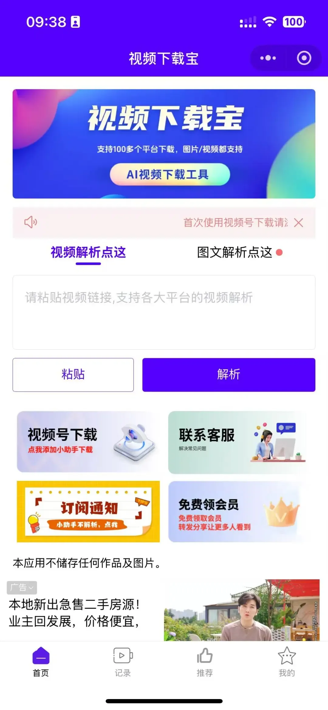 注意:视频原始链接是不支持直接下载的,这里都需要先通过小程序或者小程序解析“下载链接”。