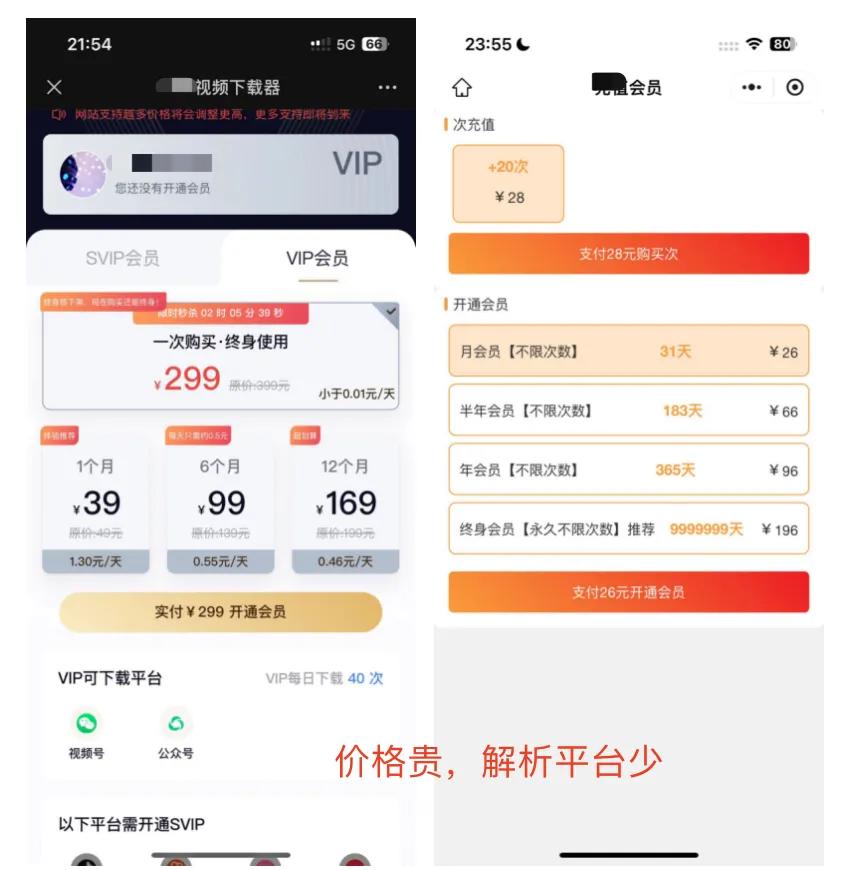 🔥永久会员139.9元(持续涨价中),❌同行价196-299 元📢由于服务器承载和新功能不断开发,我们的收费也会逐步提高,后续将会逐步取消【永久会员】名额,改成年费,大家早买早享受!并且会持续更新小程序端产品功能,永久会员持续享受!不再多花一分钱。视频下载开放新的会员福利啦,凡是购买年度会员和永久会员的用户,都可以找客服领取领取一份淘金资源库资料,这是一份汇聚各领域平台实操项目的赚钱项目案例和实操工具合集文档。详细资源可以查看视频介绍↓