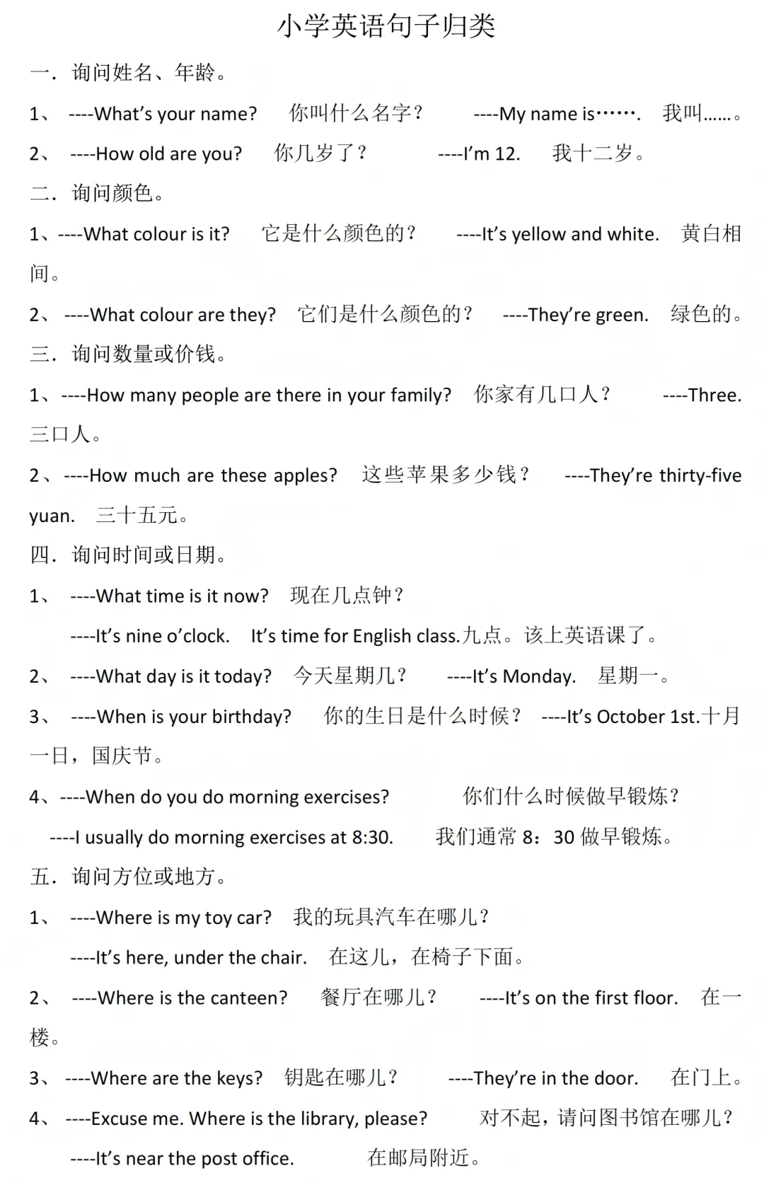 本期为大家汇总了核心的小学英语语法知识点、常用词组及句子分类。资料优质,实用性强,且完全免费开放下载。