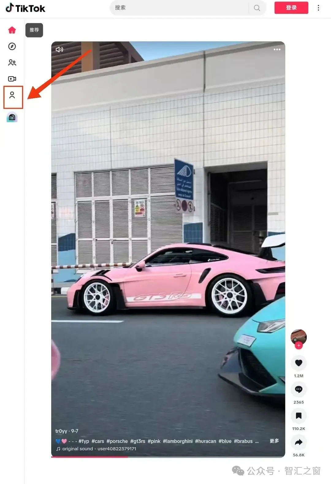 2、电脑打开tiktok网页版点击登录(手机用户直接打开软件是一样的)。
