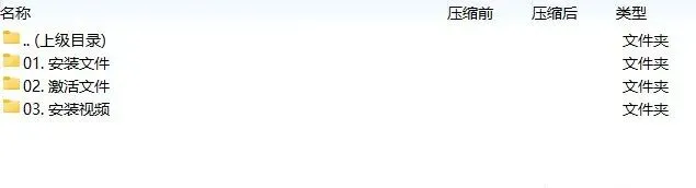 2、打开刚刚已经解压好的文件夹,可以看到安装文件和激活文件压缩包,分别右键解压出来。
