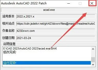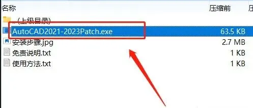 9、返回之前解压的“激活文件”文件夹,找到并选中“AutoCAD2023-2022-2021Patch.exe”,鼠标右键点击“复制”