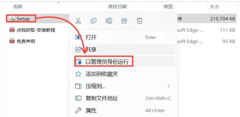 3.鼠标右击【Setup】选择【以管理员身份运行】。