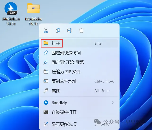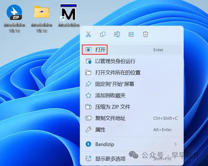 37、右键桌面上的【Modelsim软件图标】,点击【打开】