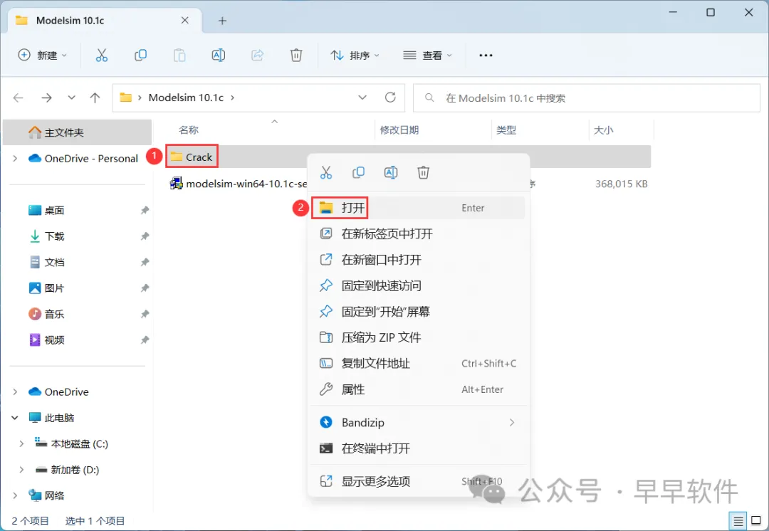 13、回到Modelsim 10.1c文件夹,找到【Crack】文件夹,右键【打开】它